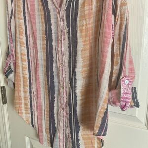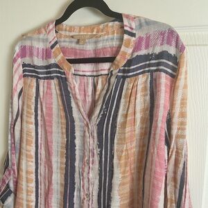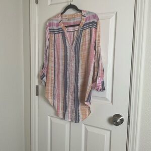 HOPE & HARLOW V-NECK STRIPED BUTTON DOWN SHIRT size X-Large preowend see pictures