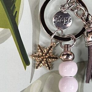 HOPE White Christmas Keychain Bag Charm Multi Suede Tassel Star Snowflake Swivel