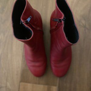 Red leather ankle boots with zipper from Hopp Studios. Super comfortable, low heel. Great office or commuter boot.