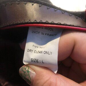 Waterproof traditional beret. THe inner rim stitches were picked open to see if it would fit better but my big old head still didn't fit. Purchased brand new via mail, then couldn't wear it. So hopefully someone else gets to wear this traditional chapeau. Sz L