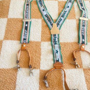 HORECA BRETELS GREEN AND LEATHER HEINKEKEN BIER SUSPENDERS