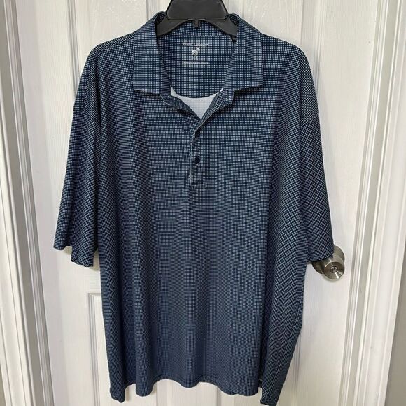 HORN LEGEND GINGHAM POLO SHIRT. PERFORMANCE LUXURY NAVY