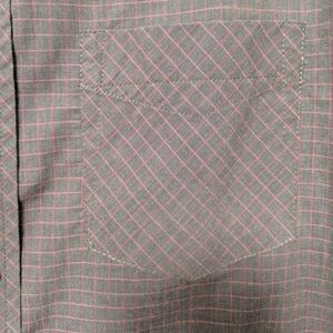 Small check button front shirt. Organic cotton/polyester blend.
