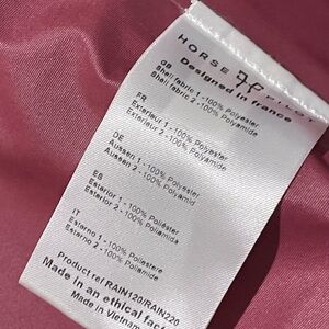 Protection and Suppleness. With its 3-layer 10K/10K material positioned on the upper part of the jacket, it protects riders from rain on the most exposed parts of the body: head, shoulders, arms and chest.A fine material is placed on the lower part to bring lightness to the jacket.This material also has good water-repellent properties.Under the wide flap all around the jacket there are several openings that allow for mechanical ventilation which is ideal for training. Used several time gently used condition. Has tons of life left.