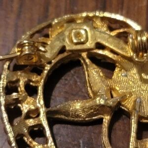 HORSE SHOE or arched brooch pin with mother of pearl flower