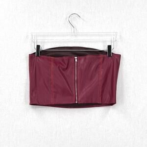 HOSBJERG Joe Dolly Tube Top Womens Medium Burgundy Faux Vegan Leather Strapless