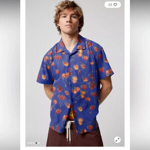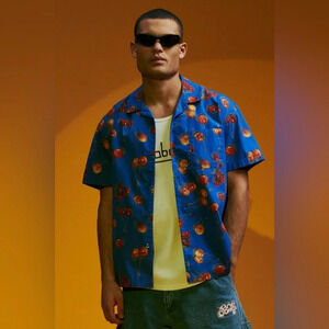🍄HOST PICK 2 X🍄OBEY Bombed Woven Cherry Shirt, Satin Blye Multi, Medium, NWT 🍒