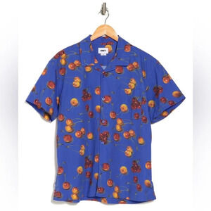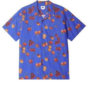 OBEY Bombed Woven Cherry Shirt, Satin Blye Multi, Medium, NWT 🍒