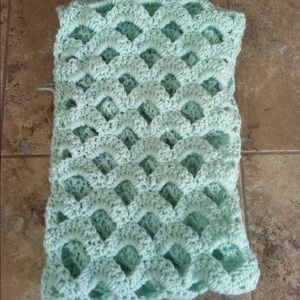 Mint or turquoise infinity scarf handmade by me. Features a fan or scallop edge design perfect for spring. 100% acrylic and 9 inches across and 29.5 inches length folded in half.