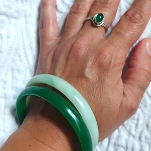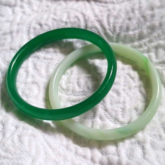 Jadeite/Glass, 1 Green and 1 Light Green Varigated Jade Bracelet.