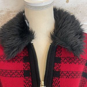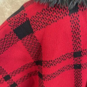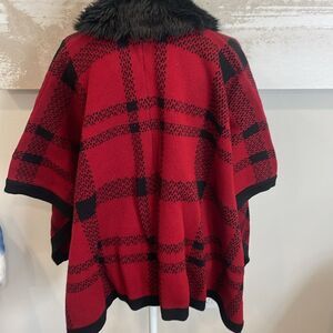 HOST PICK Anne Klein Petite S/M Plaid Zip Front Poncho with Faux-Fur Trim