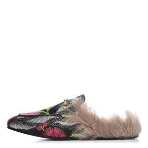 HOST PICK ๐๐๐Gucci Tapestry Brocade Fur Floral Princetown Slide New in box