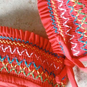 Lucky Brand Orange Fiesta Crochet Bikini Set. Such fun vibrant colors with this bikini! Color: Coral/Orange. Top has removable cups. Bottoms have nice coverage on your tush. NWT on both the top and bottom. Item #: 1538750 Size: Small