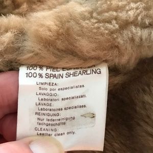 This Coat is a Warm Tan Color; Suede/Shearling with a Two Button Closure