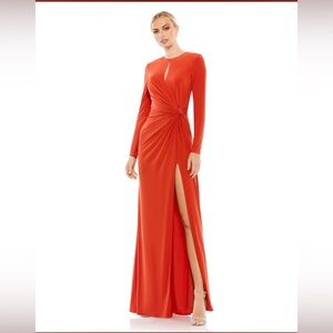 HOST PICK 🎉MacDuggal $625 NWT Jersey Knit Keyhole Ruched Knot Side Slit Dress