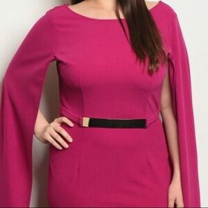 A boat neck and back cutouts — along with those amazing loose arm capes — give this amazing dress lizzazz and sex appeal. Stretchy nylon spandex fabric blend. This dress just oozes elegance and demure but definite sex appeal.