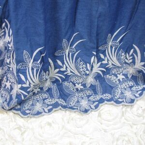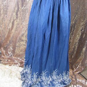 Gorgeous dress! Blue with white embroidery at the top and bottom, even in the pockets! this dress fits like a dream, and has a flowy boho prairie skirt with scalloped hem. Adjustable straps, Zip back.