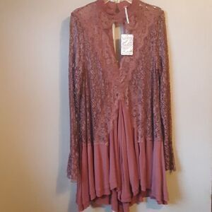 🤩HOST PICK! 🤩 NWT FREE PEOPLE DUSTY MAUVE TELLTALE LACE DRESS SMALL 💥💥💥💥💥