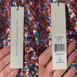 🎉HOST PICK🎉 NWT Monique Lhuillier Halter Neck Sequin Gown Sz 2