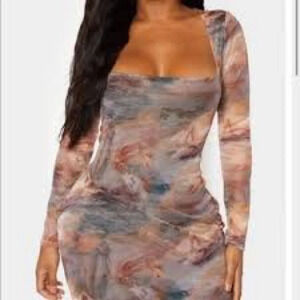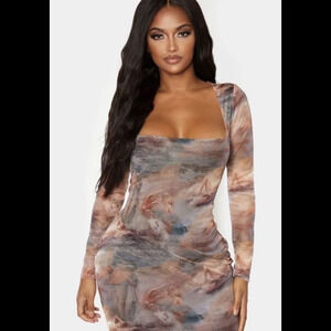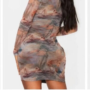 This print mesh bodycon dress is sure to give your look a chic finish. Featuring a renaissance print mesh material with a square neckline and long sleeves, team it with some simple jewelry and strappy heels for a night out with the dolls.