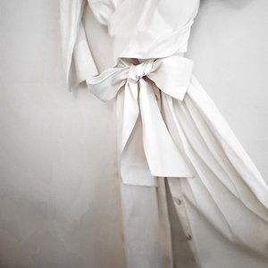 Cotton Dress from Robert Rodriguez' Collection. Fabric Covered Buttons. Wrap around versatile BOW. Delicate lacing details.