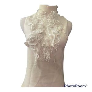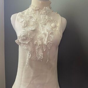 Rare 2011 Chanel “My Underwater Life” by Elisabeth Quin collection cream turtleneck tank top blouse