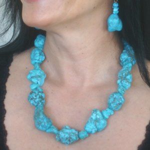 you will think this is real turquoise! This necklace does come with matching earrings. It's fabulous. It's 20in. long