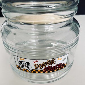 "HOST PICK" VINTAGE "Doggie Snacks" Clear Glass Lidded Jar EUC