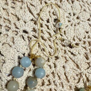 This beautiful mala can be used as a traditional Tibetan mala to assist you in meditation and setting your intentions or simply as a beautiful piece of jewelry to complement your wardrobe. It is new, one of a kind and was designed and handmade by me, @poshemian! It consists of 108 semiprecious 8mm gemstone beads including: Agate, Amazonite, Gold Sandstone, Moonstone, Imperial Sea Sediment Jasper White Mermaid Glass, Czech Crystals, brass and gold tone bead accents, and a beautiful hand carved Agate Goldfish pendant. Strung on sturdy nylon cord the beads are individually hand knotted. It can be worn as is or doubled for a shorter, layered look. Approximately 6-8 hours of work go into each mala I create including designing, stringing, knotting, finishing and cleansing. Malas are cleansed using the moonlight method and are ready for the recipient to set their own intentions for it.