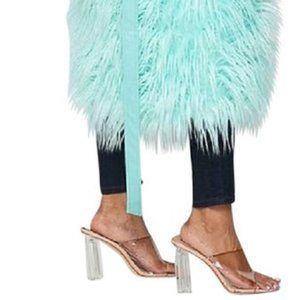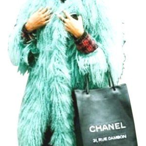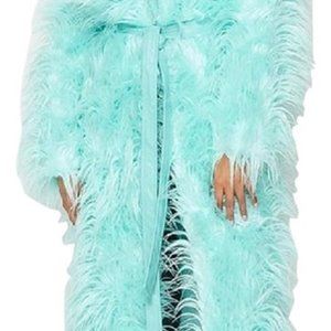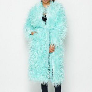 Mint color Boho Chic long Shaggy fur Teddy Bear Coat
