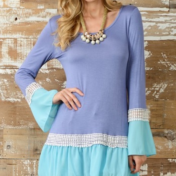 NWOT Fabulous blouse with semi sheer flutter sleeves and detailed bottom.