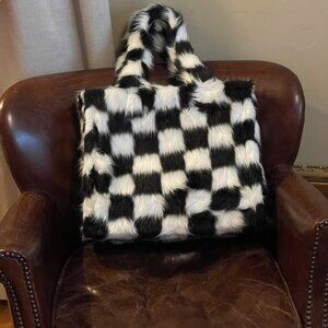 ⭐️HOST PICK⭐️MacKenzie Childs Totally Mod Fab Fur Check Tote! -NEW