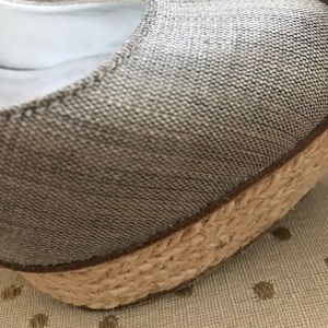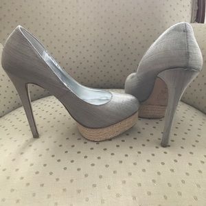πHOST PICKπElegant shimmery metallic finish 3 1/2" raw silk platform pumps are great for the summer with a jute rope platform. Very stylish and complement any outfit! Perfect for the summer!!