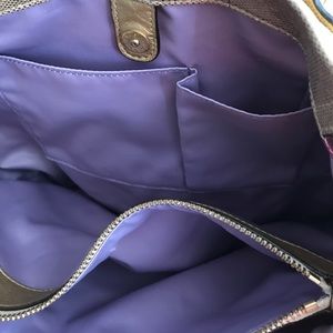Pre-owned floral & gold Coach purse. Some of the gold color fading on the handles & front. I took pictures of areas. But it does does not take away of the beauty of the purse. Inside is prestige condition as pictures shows. I can take more pictures as needed! I try to provide specific detail including imperfections so there won't be any misinterpretation, miscommunication & dissatisfaction w purchase. Please look @ all the pictures ask any questions before purchase. Thank you ๐ ๐๐โค๏ธ๐