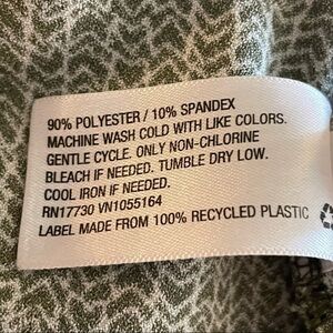 This dress is in good condition with normals signs of wear. It has an elastic waist with a button front. It does have pockets and chest pockets as well. It is 90% polyester and 10% spandex and machine washable. This is a great dress for any casual outing and perfect for those hot summer days.