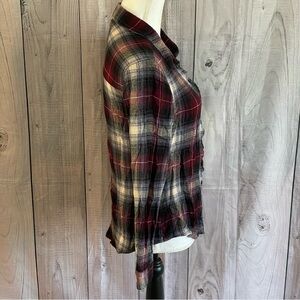 This shirt is in good condition with normal signs of wear. It does have one spot where the hem is coming out at the bottom of the shirt as I have shown in the photos. It is 100% rayon and machine washable. This is a plaid, lightweight flannel style shirt. It is great for the upcoming winter months. It is great for the every day outside chores or just a casual day to lounge around.
