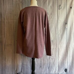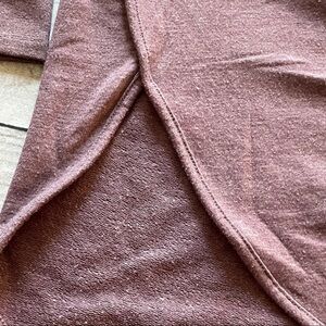 This sweatshirt is in good condition and has minimal signs of wear. It is 62% polyester, 34% rayon and 4% spandex. It is a nice sweatshirt for those cold summer nights at the lake or at the cabin. Great with a pair of leggings to wear everyday in the winter as well. It is nice enough to even wet to the office with dress pants.