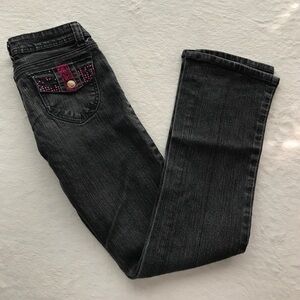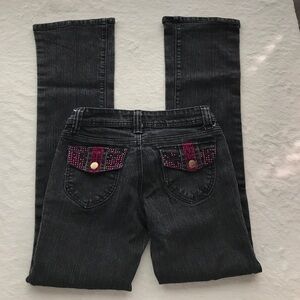 These jeans are in really good condition. They have cute design flaps on the back pockets and would be great school jeans.
