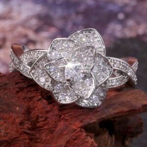 ✨HOST PICK 🍸Elegant Silver Plated Rose 🌹 Flower Simulated Zircon 💎 Ring✨