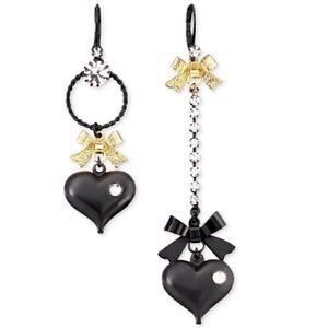 🖤 Betsey Johnson Mismatched earrings featuring black bubble heart detailed with small crystal accent and lovely bows. Earrings are set in black plated metal with a lever back closure 🖤