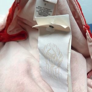 Orange/red lace wrap dress. Flaunting small bell sleeves and a flirty fun detail on the bottom. Sure to be a head turner! New with tags. Ordered from revolve to try on not realizing it was final sale. Awesome little dress.