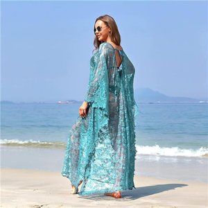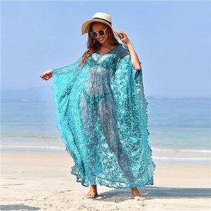 HOT BIKINI Cover up Robe Eyelash Lace Soft Peacock blue
