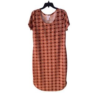 HOT GINGER Graphic Dress Rust Orange Polyester Spandex XL. Gently used HOT GINGER dress featuring a bold graphic design in rust and orange hues. Crafted from a comfortable blend of polyester and spandex for a flattering fit. Size XL—perfect for adding vibrant style to your wardrobe. Comfortable Fit