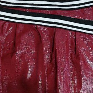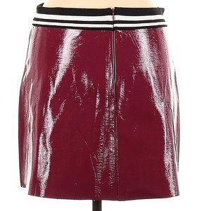 Effortlessly cool and edgy skirt from BCBGeneration! One of those timeless edgy-chic pieces that are easy to throw on and look rad. Was purchased from Bloomingdale's. New, unworn, the tag fell off in transition from the closet to the closet. Comes in high-quality vegan patent leather in gorgeous maroon (100% Polyurethane). Desinged with a flattering high-waist slightly flared silhouette, black & white contrast trim, asymmetrical overlay with pleating, raw hem, and zip closure on the back for an easy way in and out. Comfy and versatile, will look amazing paired with any outfit. Approx measurements: Waist flat 15", Length: 16". NWOT from a smoke-free home.