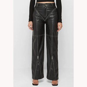 💥HOT ITEM💥MANIÈRE DE VOIR Leather High Waist Wide Leg Moto Pants in Black