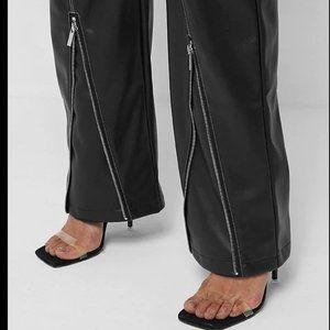 A must-have super chic and sexy statement pants from Maniere De Voir! One of those hot pieces that make you feel like a dangerous woman! Comes in go-with-everything black. Designed with a flattering high-waist, zipper & button closure, wide-leg silhouette, edgy zip teeth detailed knicker section, contrast stitching, adjustable hem with silver zip, awesome adjustable waistline, silver Manière De Voir branded plaque, 2 deep zipped side pockets, 2 decorative pockets on the back, and soft lining. Made from high-quality vegan leather material that looks and feels like genuine leather (55% Polyester, 45% PU). Very comfy and fits like a glove. It will look equally great with a sexy crop top and leather jacket as it is with a blazer. Size 12. Fits like M. Approx measurements: 44.5" Length, 32" Inseam, 13.5" Rise, 14.5: Waist. NWT from a smoke-free home.