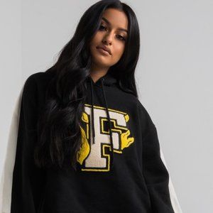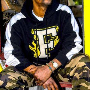 FENTY-'F' at the front is made of a plush chenille fabric FENTY-'13' on top of the drawcord-equipped hood. Made of high-quality 83% cotton and 17% polyester. Approx: 48" Chest, 23" Length. Excellent condition from a smoke-free home.