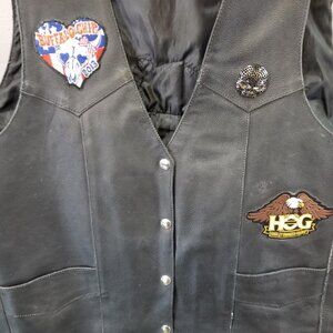HOT LEATHER Black Motorcycle vest w/HOG & Extra patches - sz 2XL
