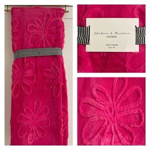 $78 MSRP! New with tags gorgeous, luxurious, super soft bright & vibrant HOT PINK throw blanket 50x70” throw blanket by Chelsea & Theodore. Soft, textured “Daisy” repeat pattern on front. Backing is solid soft “sueded” material. We have marching 20x20 pillow available (separately) at the time of this listing.
