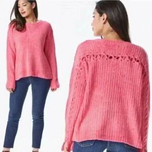 Ultra soft chenille Hot pink Sweater with lacing detail on sleeves and back!